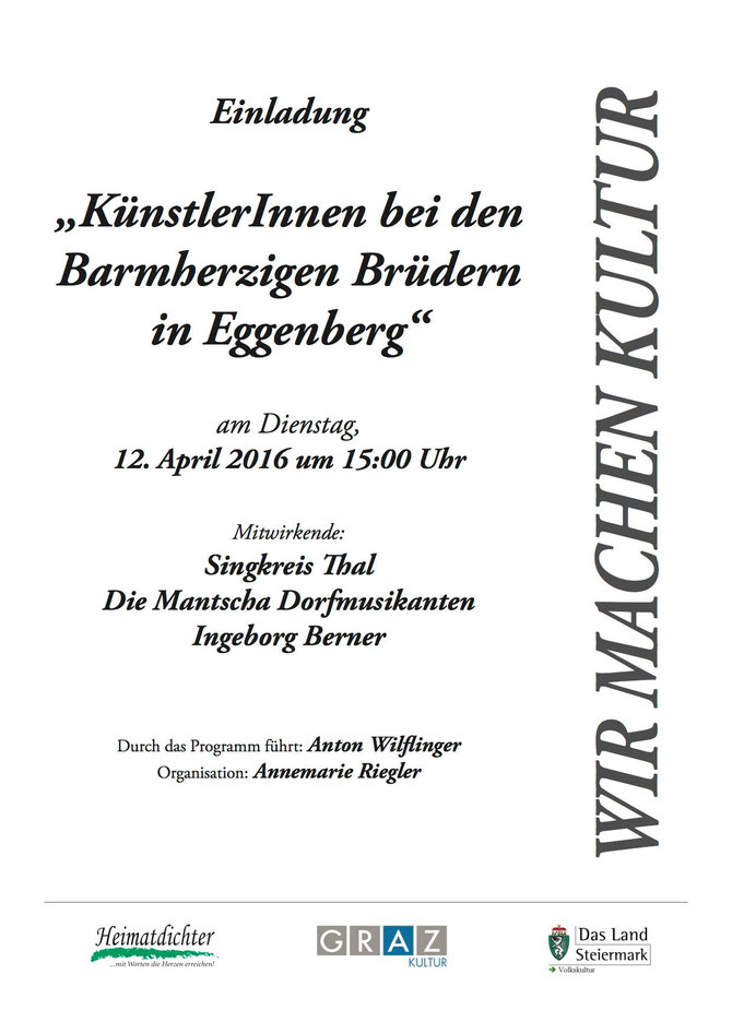 Wir besuchten die Bewohnerinnen und Bewohner  im Haus der Barmherzigkeit in Graz am Mittwoch, dem 20. April 2016 um 15:00 Uhr, um mit ihnen gemeinsam einen abwechslungsreichen und heiteren Nachmittag zu verbringen. Mit unserem bunten Programm aus Musik und Dichtung boten wir eine willkommene Abwechslung im Heimalltag. Für diesen Nachmittag  stellten sich Künstlerinnen und Künstler aus dem Bereich der Volkskultur zur Verfügung.